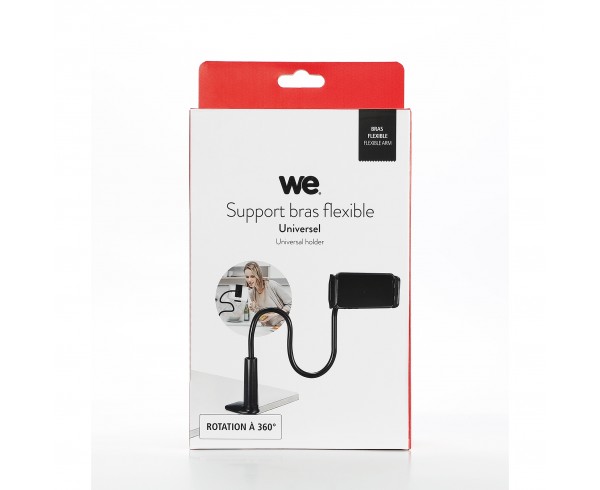WE Support universel avec long bras flexible de couleur noir. Compatible avec de trés nombreux produits ! Multi-usages. Noir